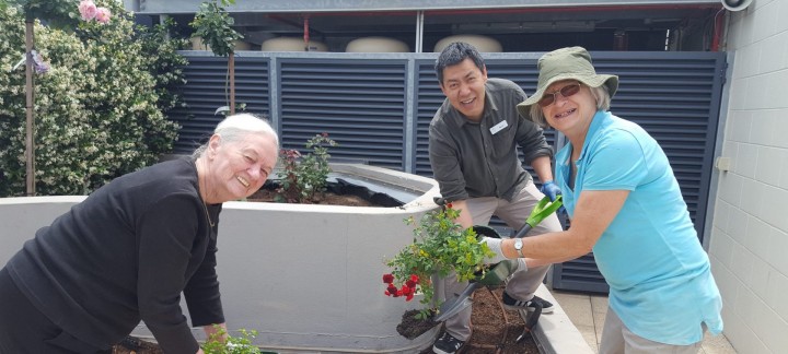“The residents have been involved in planting out the garden and pruning it, particularly Ethel Delmenico who has a green thumb,” says Mercy Place Mont Clare Lifestyle Coordinator Navin Rana. “We also have a volunteer, Patricia Esslemont — a real garden guru — who comes here every fortnight to help Ethel and other residents maintain the garden.”