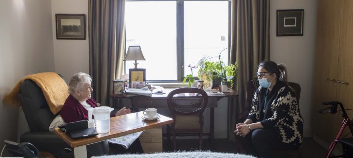 Mercy Place East Melbourne Acting Service Manager Gurpreet Kaur spends some time with resident Patricia Mills.