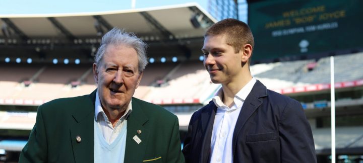 “Welcome James ‘Bob’ Joyce, 1956 Olympian 110m hurdles,” Bob said, reading from the huge MCG scoreboard. “Wow, is that for me? Thank you.”
